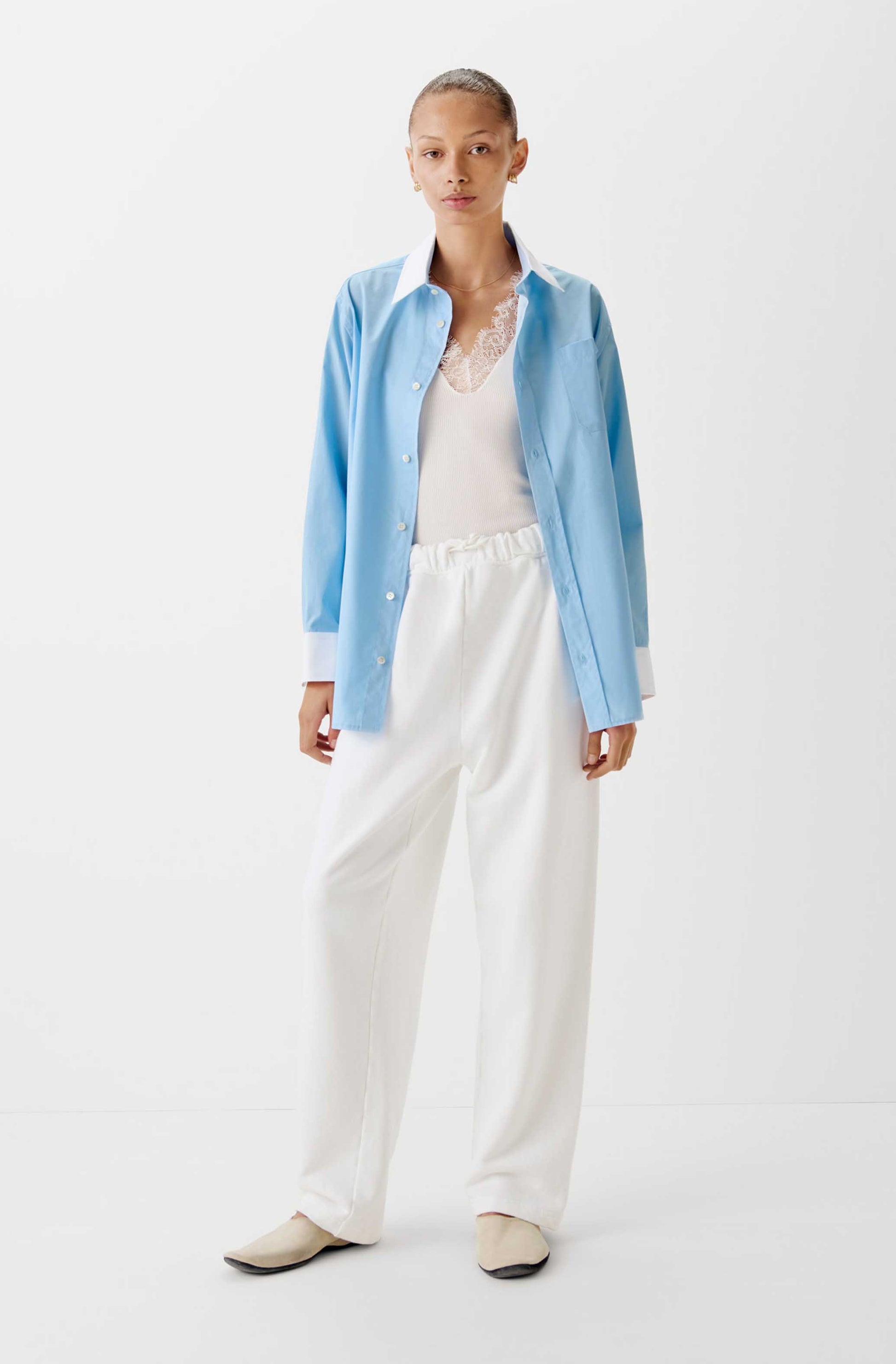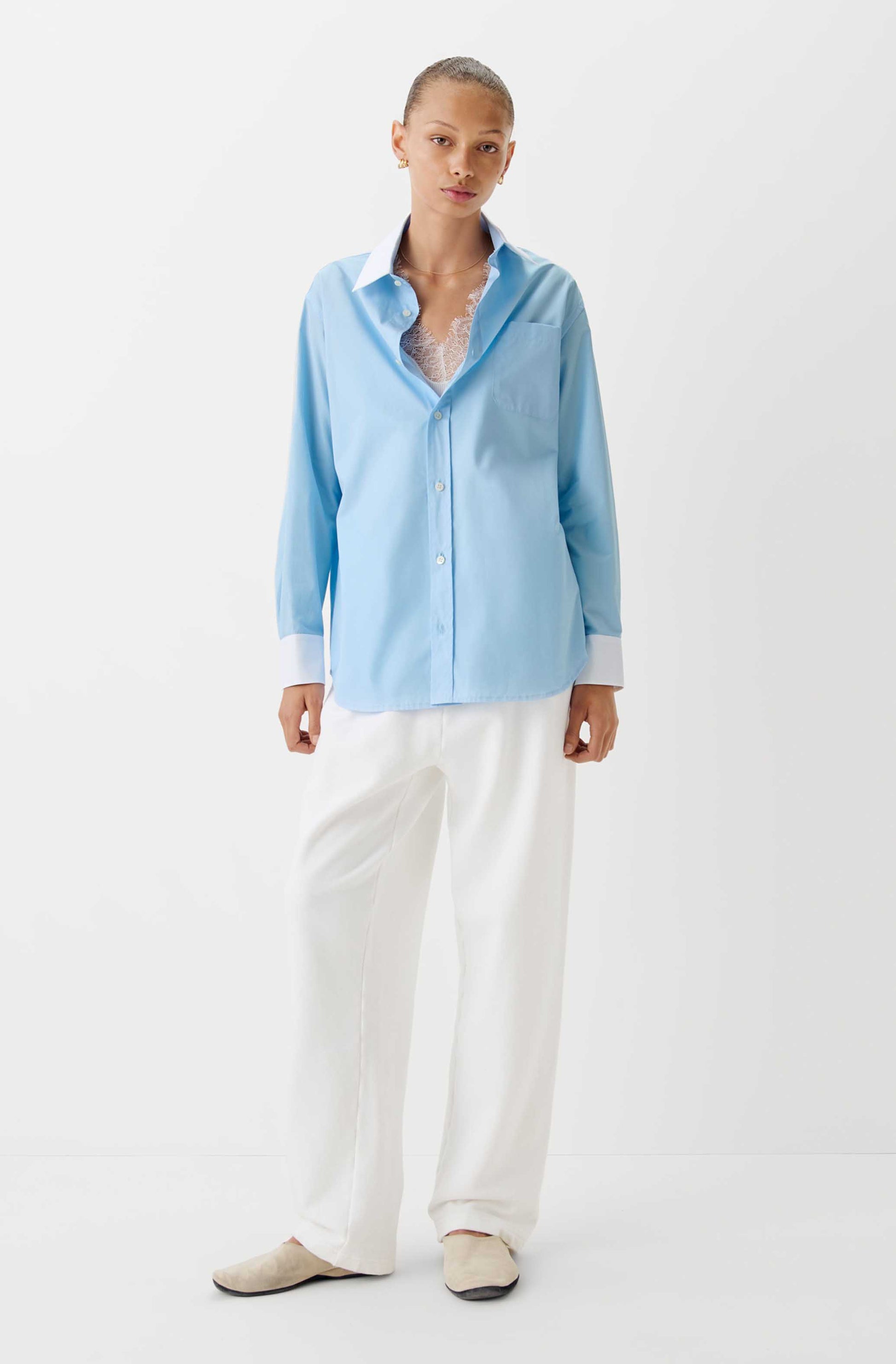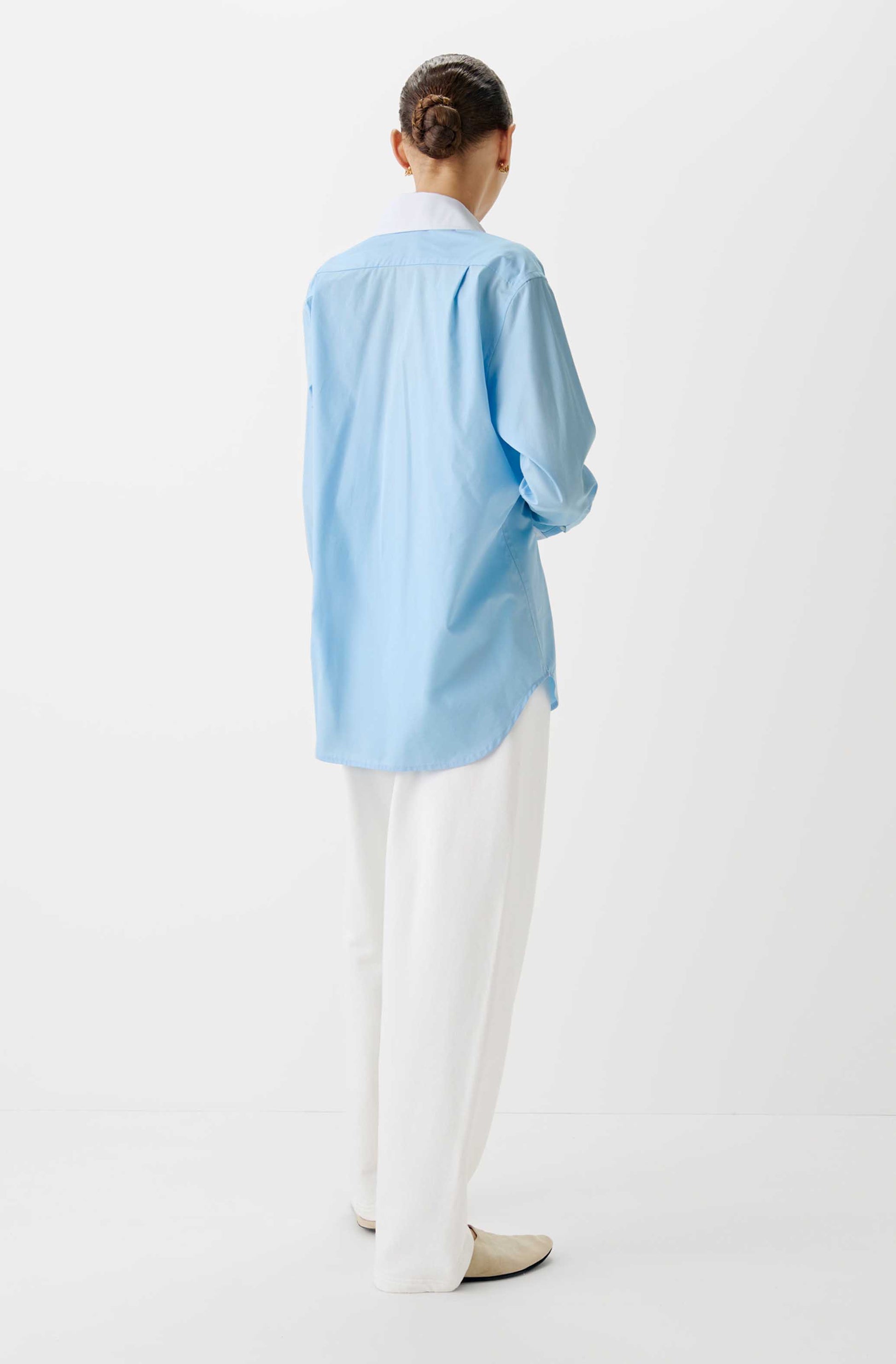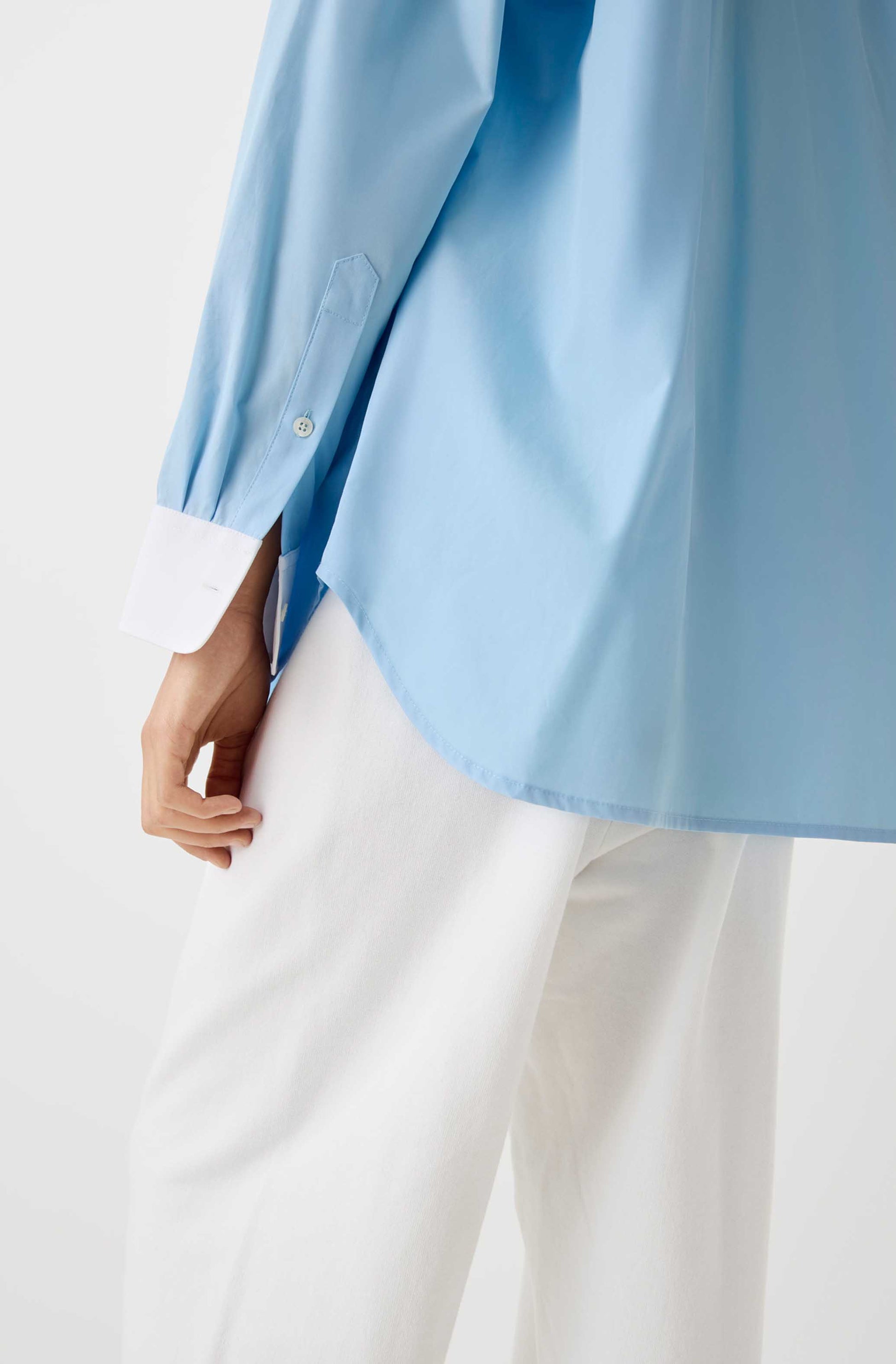 Cut from fine cotton shirting woven in a prestigious Italian mill, The Classic Shirt is designed for a relaxed fit with dropped shoulders. A relaxed take on the banker shirt, finished with a contrast collar and cuffs.