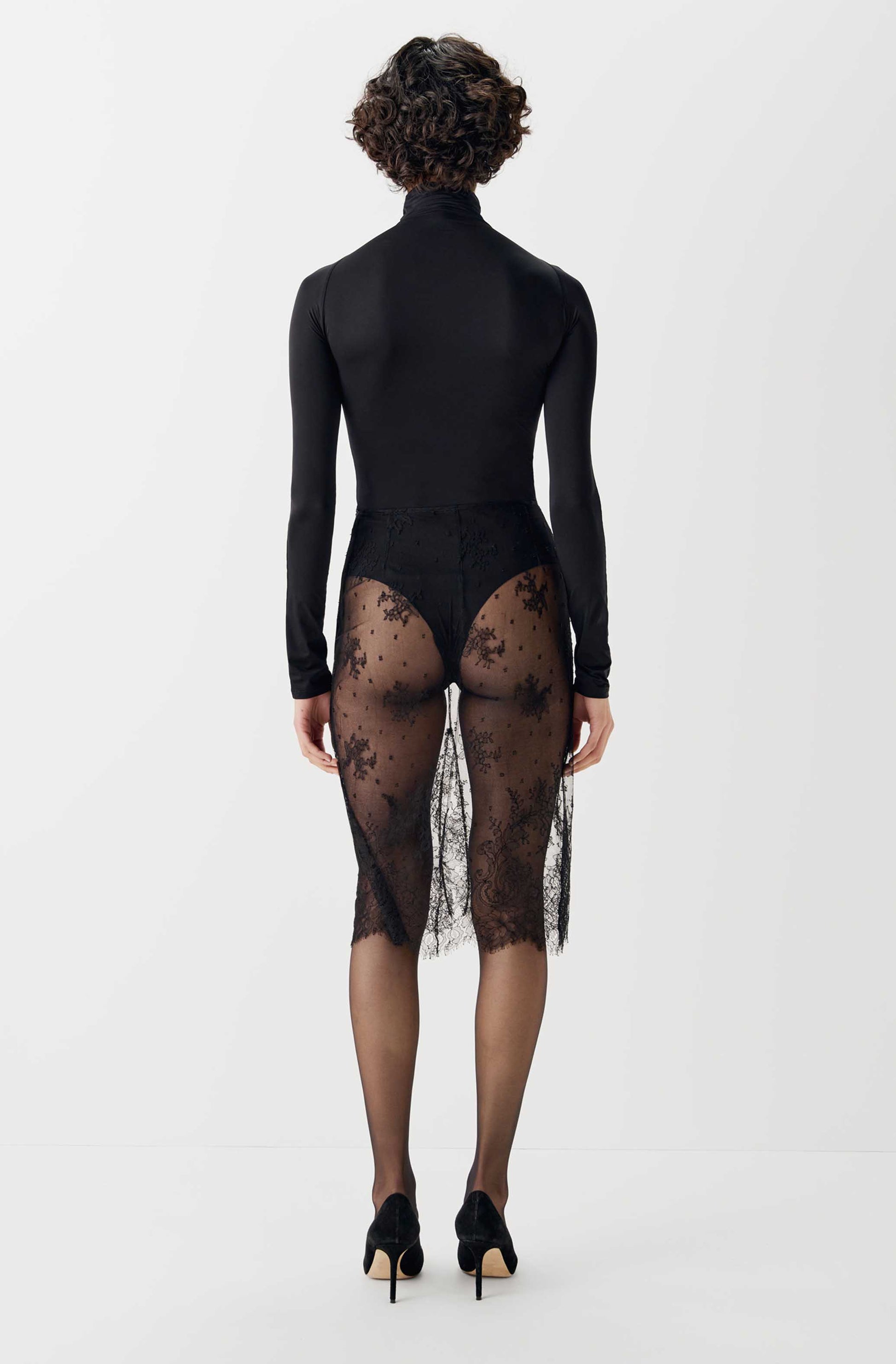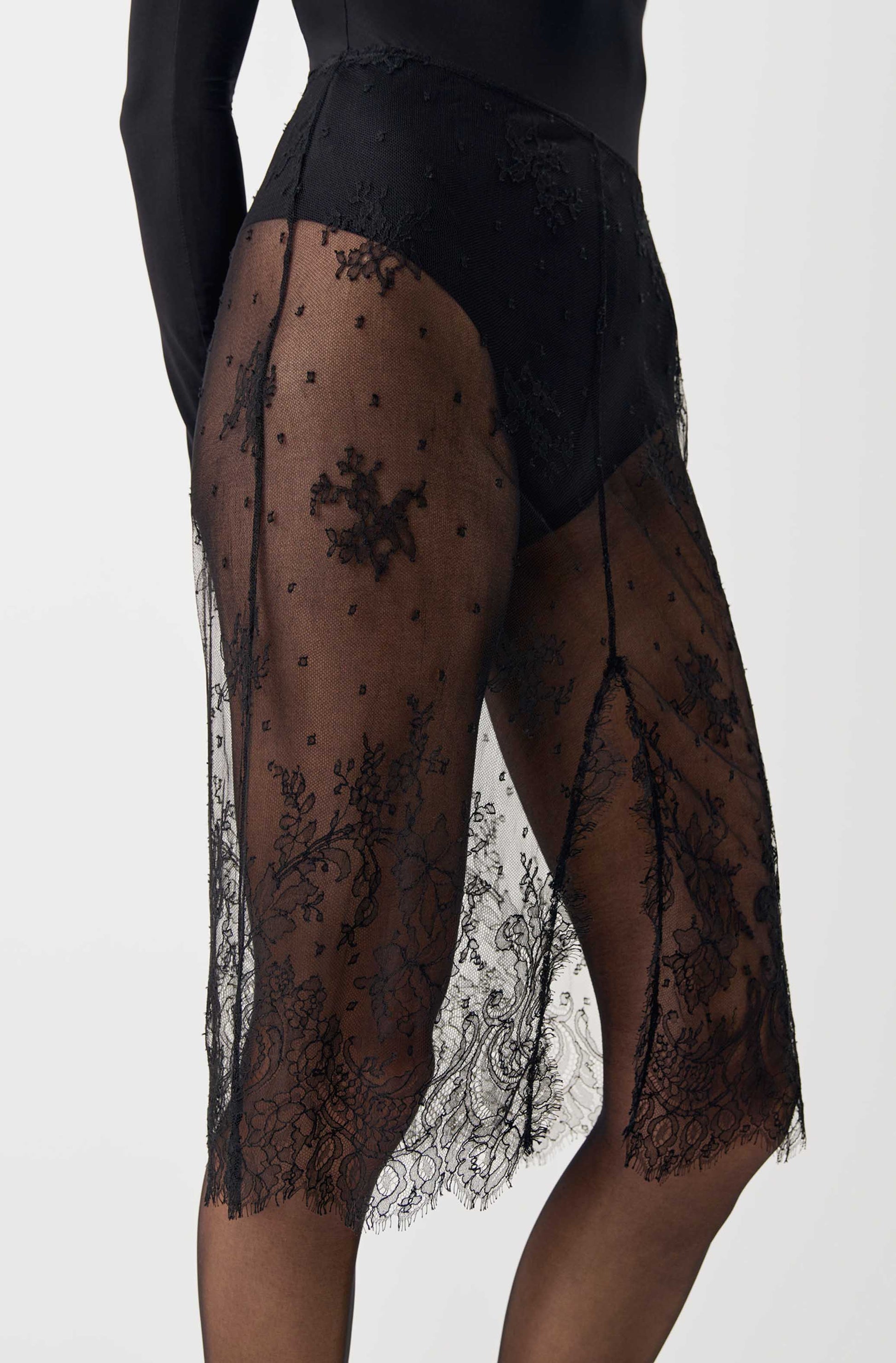 Crafted in England from French lace, The Draycott Skirt is cut to a pencil silhouette with a centre-front split. Finished with scalloped edging along the split and hem, it includes a silk-blend slip to wear underneath for versatility.