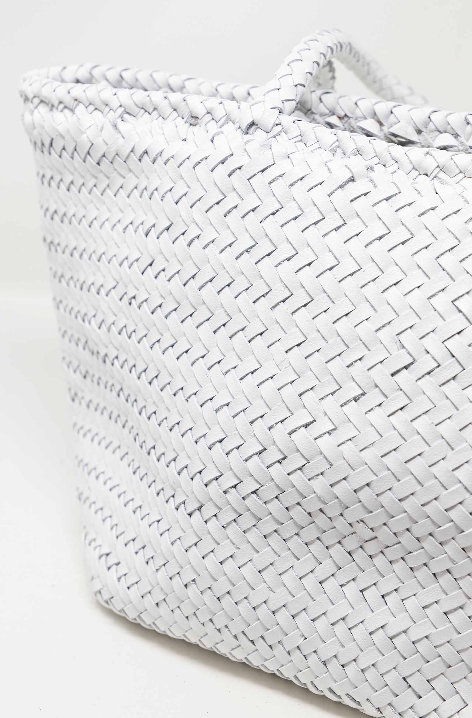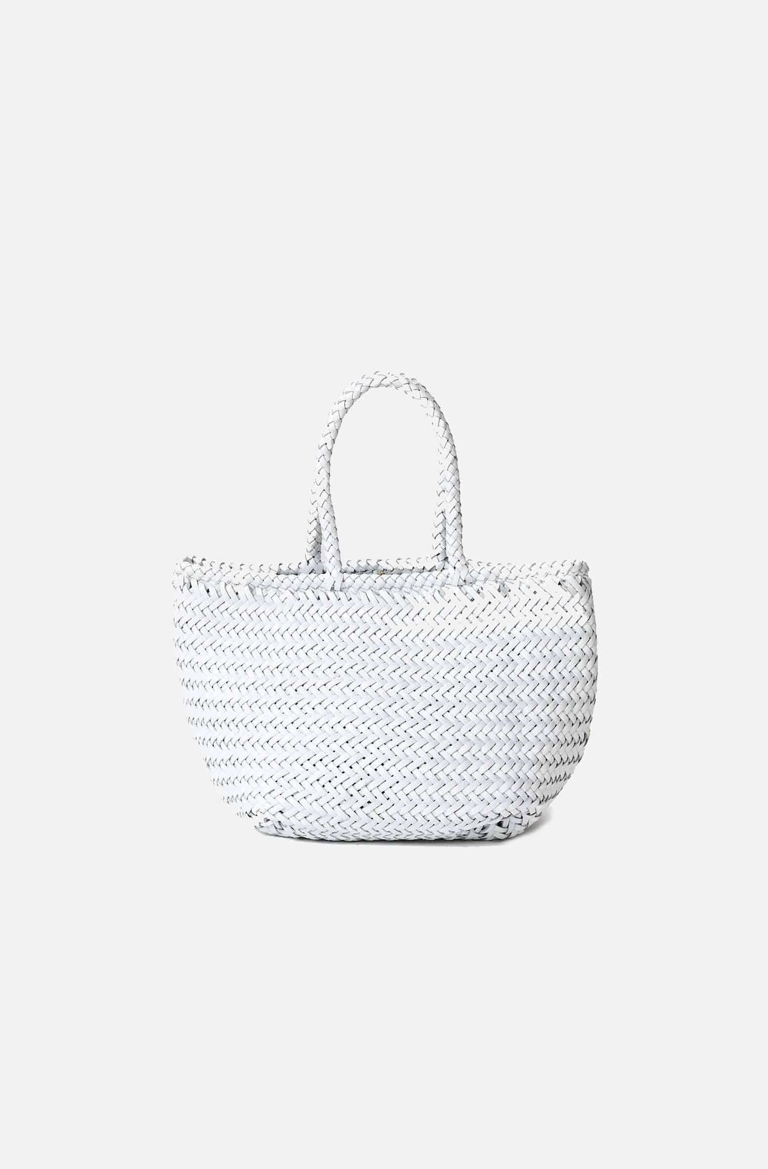 The Grace Basket Small is a more rounded version of the Triple Jump bags. Unlined and open-top, the soft, buffalo calf leather basket features elegant braided top handles and a diagonal weave that keeps its form.