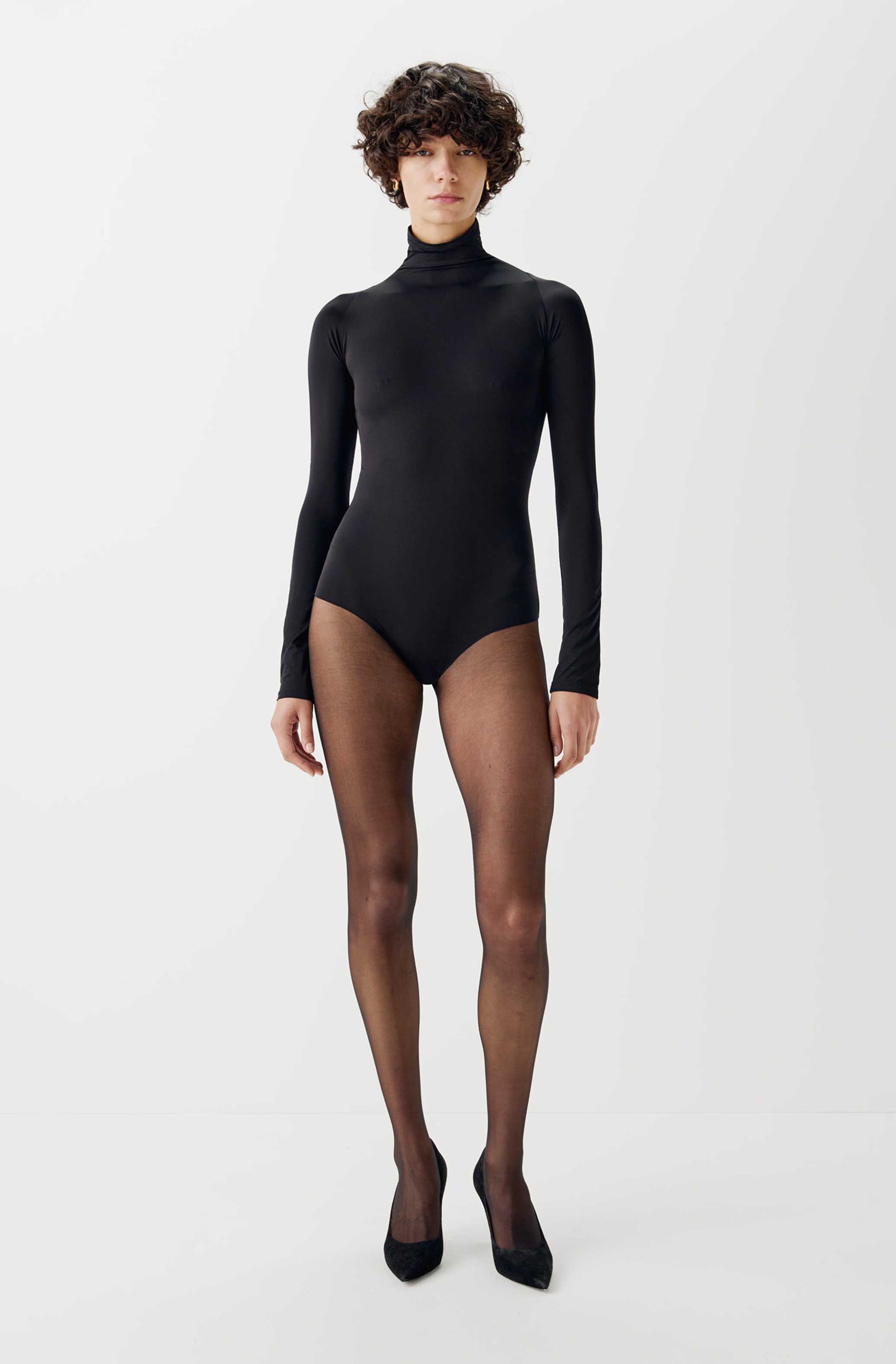 Cut from a slinky Italian jersey, The Hays Bodysuit is designed with a turtleneck silhouette and long fitted sleeves. Finished with high-cut legs and a snap button closure, it’s a sleek foundation layer for every wardrobe.