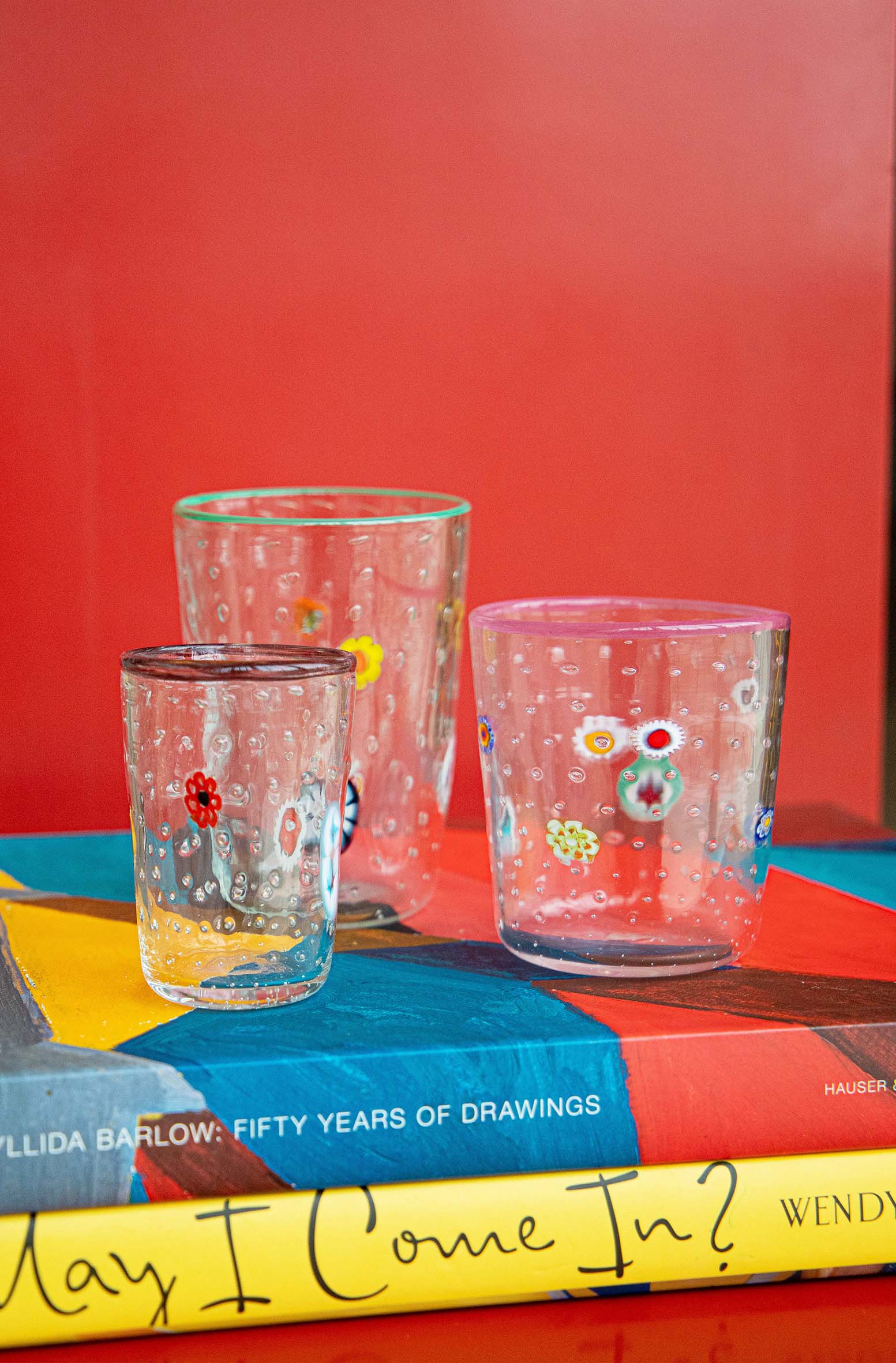 Designed and hand-made exclusively for Alex Eagle Studio, this hand painted Venetian bubble glass is one of our signature pieces, featuring flower features and a coloured rim.