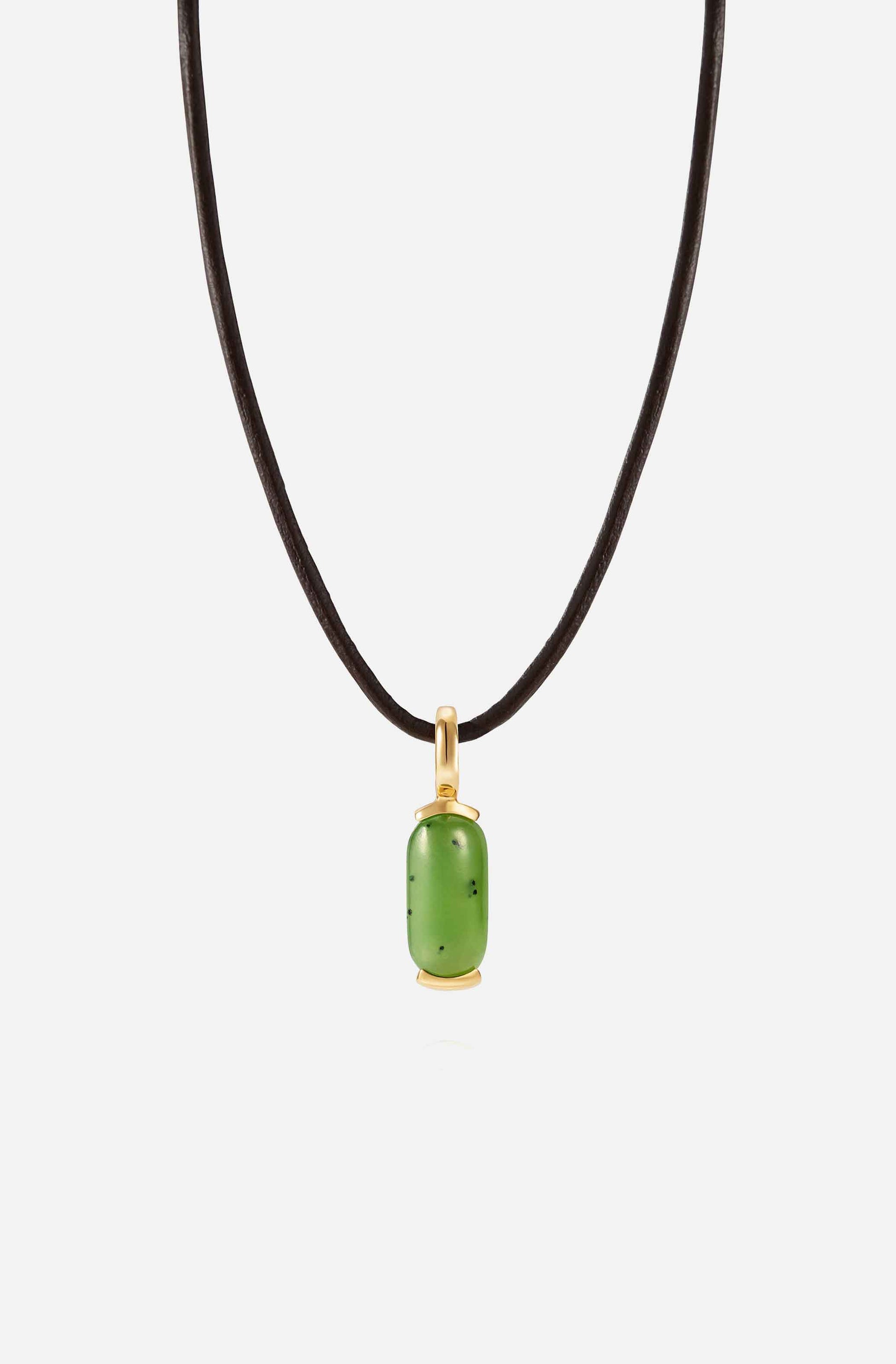 Part of Fernando Jorge's 'Sync' series. This collection focuses on the sculptural oblong forms, conveying genderless visual language. This pendant is made up of 18k yellow gold with hand-carved nephrite jade.