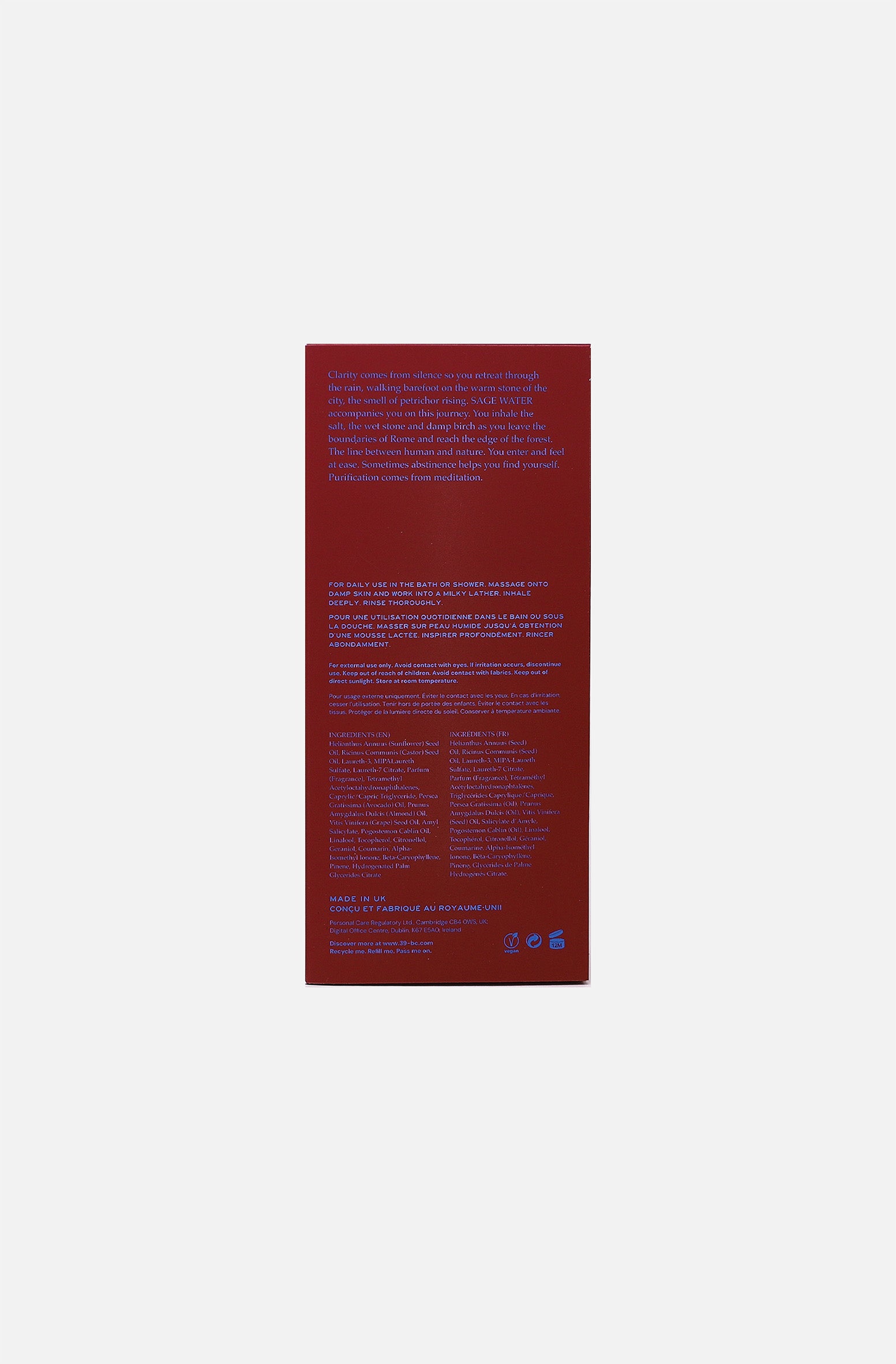 A softly fragranced oil cleanser for bath or shower. Sage Water gently cleanses while nourishing the skin, transforming into a milky veil on contact with water. The result is skin that feels supple, comforted and lightly scented — never stripped.