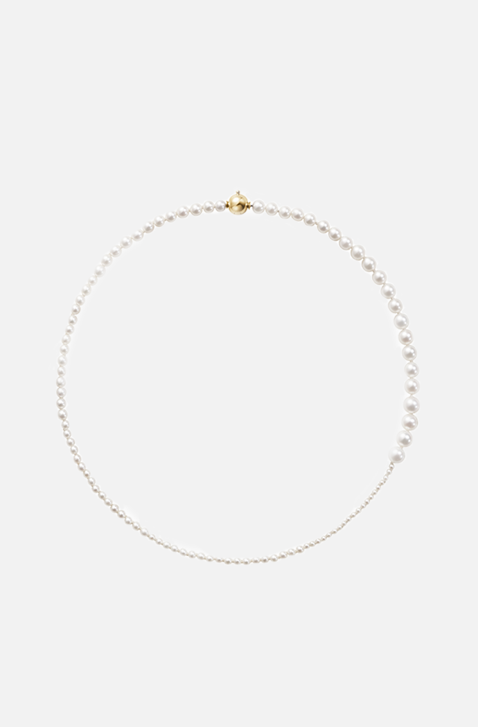 Sophie Bille Brahe's signature use of pearls gives her modern, minimal designs an extra layer of elegance. This 'Petite Peggy' necklace is cast from 18-karat gold. It has a slim chain and is strung with a row of glossy pearls - each one is slightly smaller than the other, creating a graduated effect.