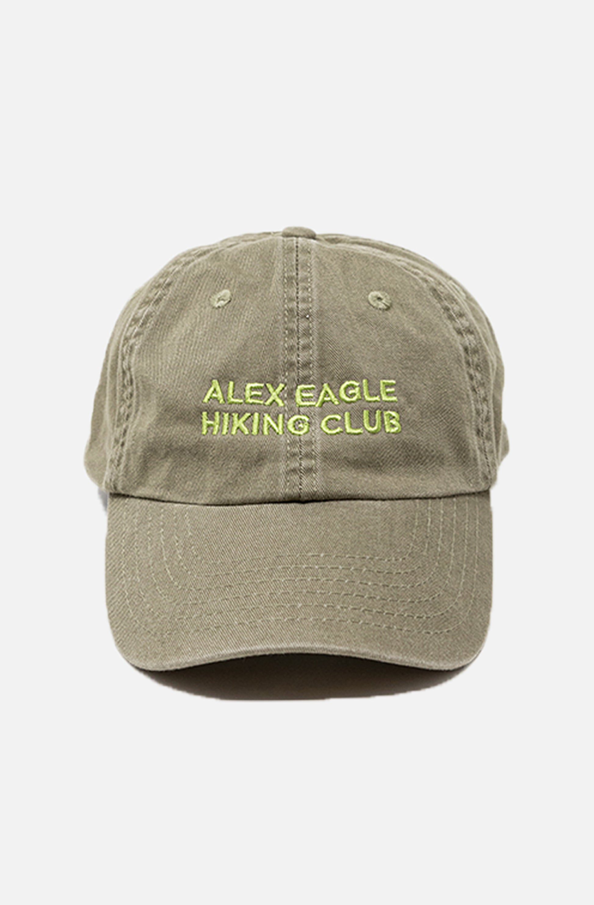 The Alex Eagle Club Cap features embroidered writing and an adjustable brass closure.