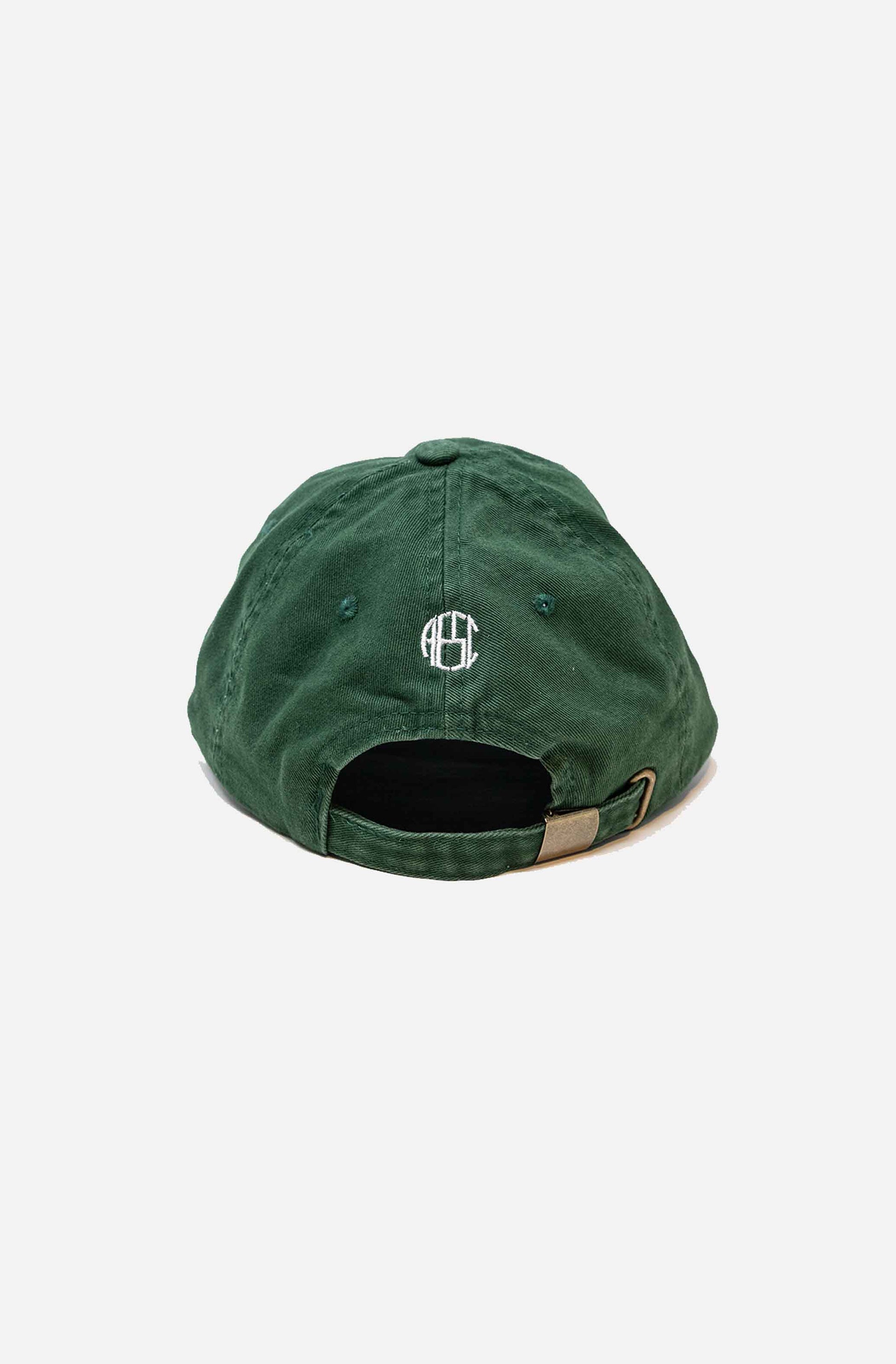 The Alex Eagle Club Cap features an embroidered monogram and an adjustable brass closure.