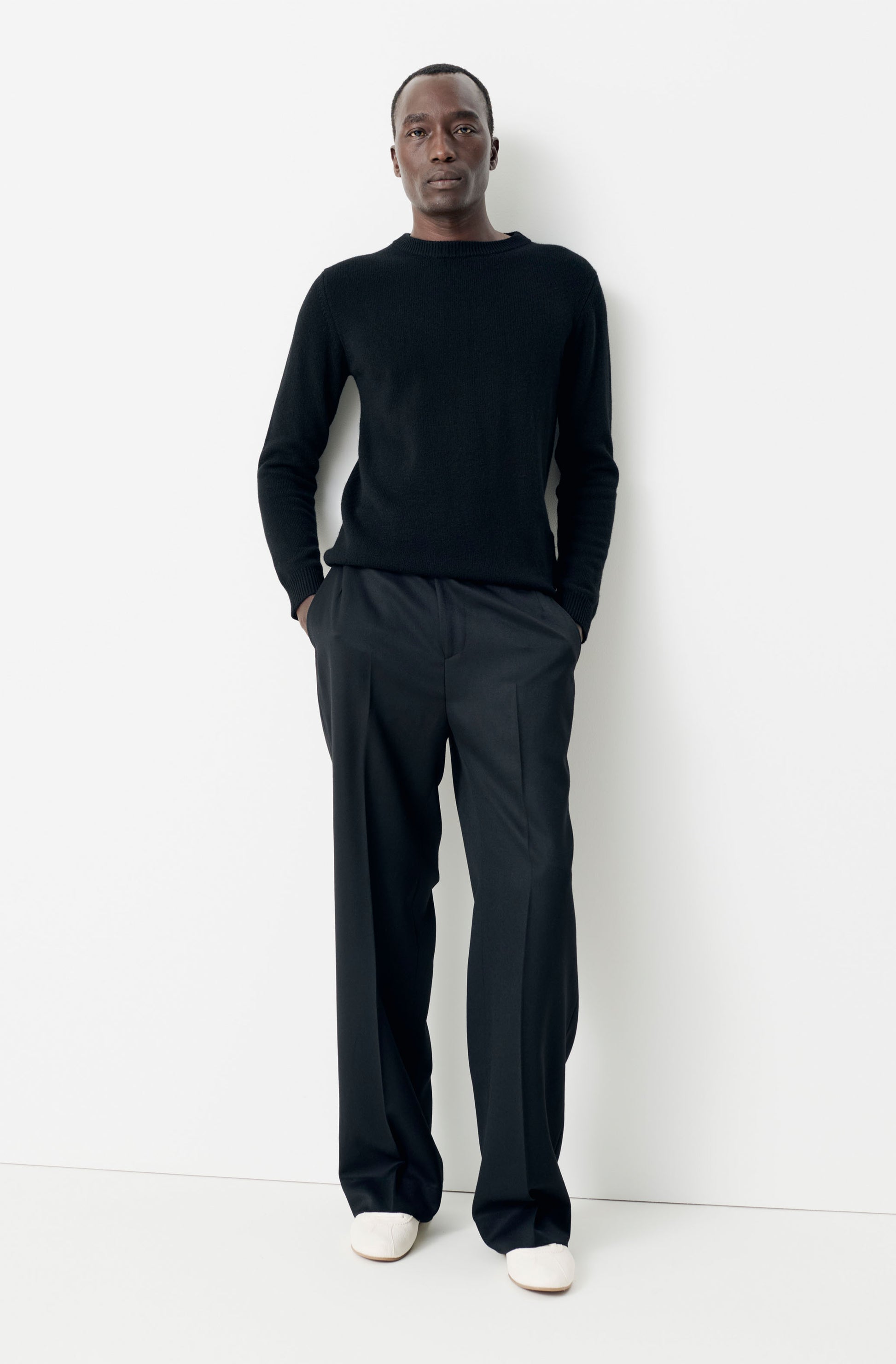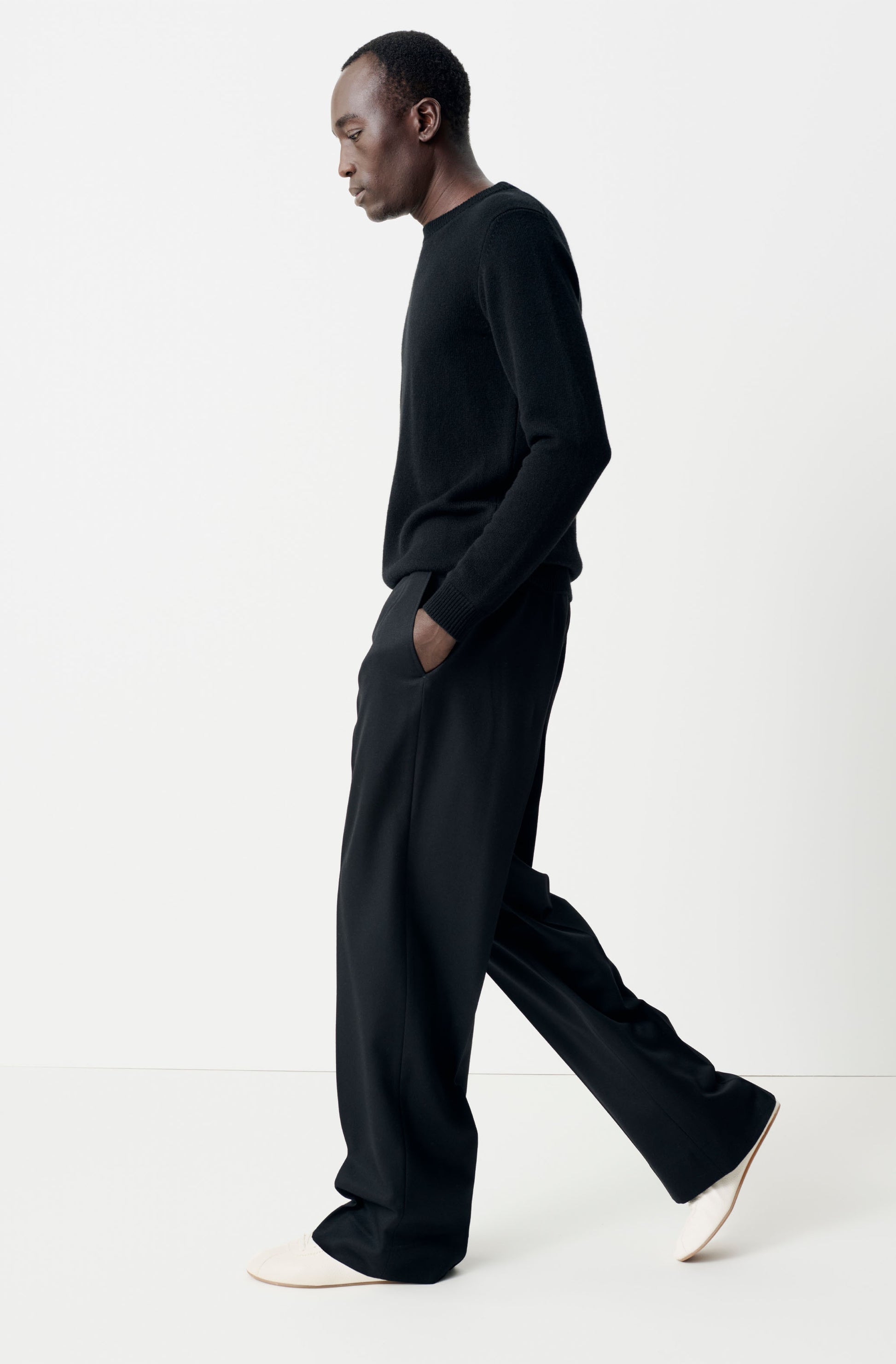 The Black Studio Suit is crafted from 100% Loro Piana wool in a luxurious black fabric, cut with our signature relaxed, but tailored fit. The Trousers feature a silk lining, zip closure and side adjustors to create the perfect desired fit on the waist.