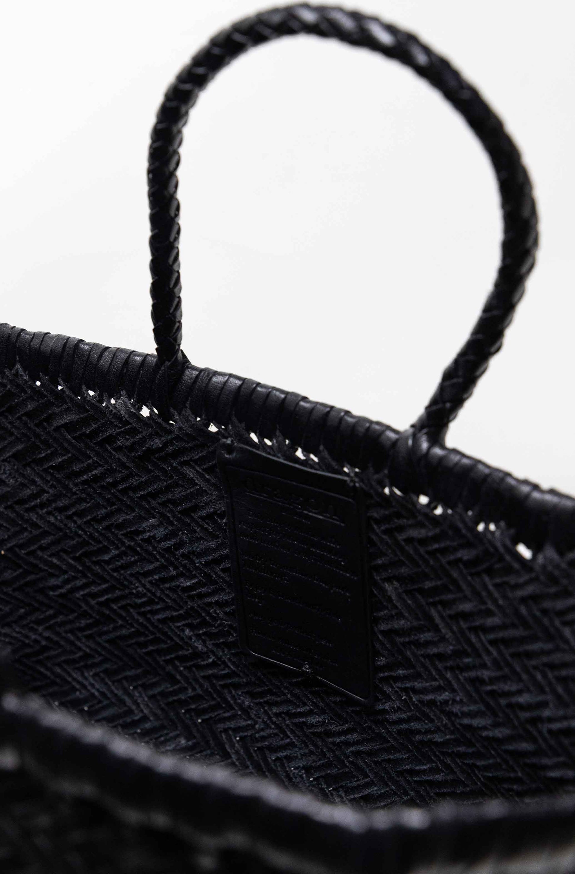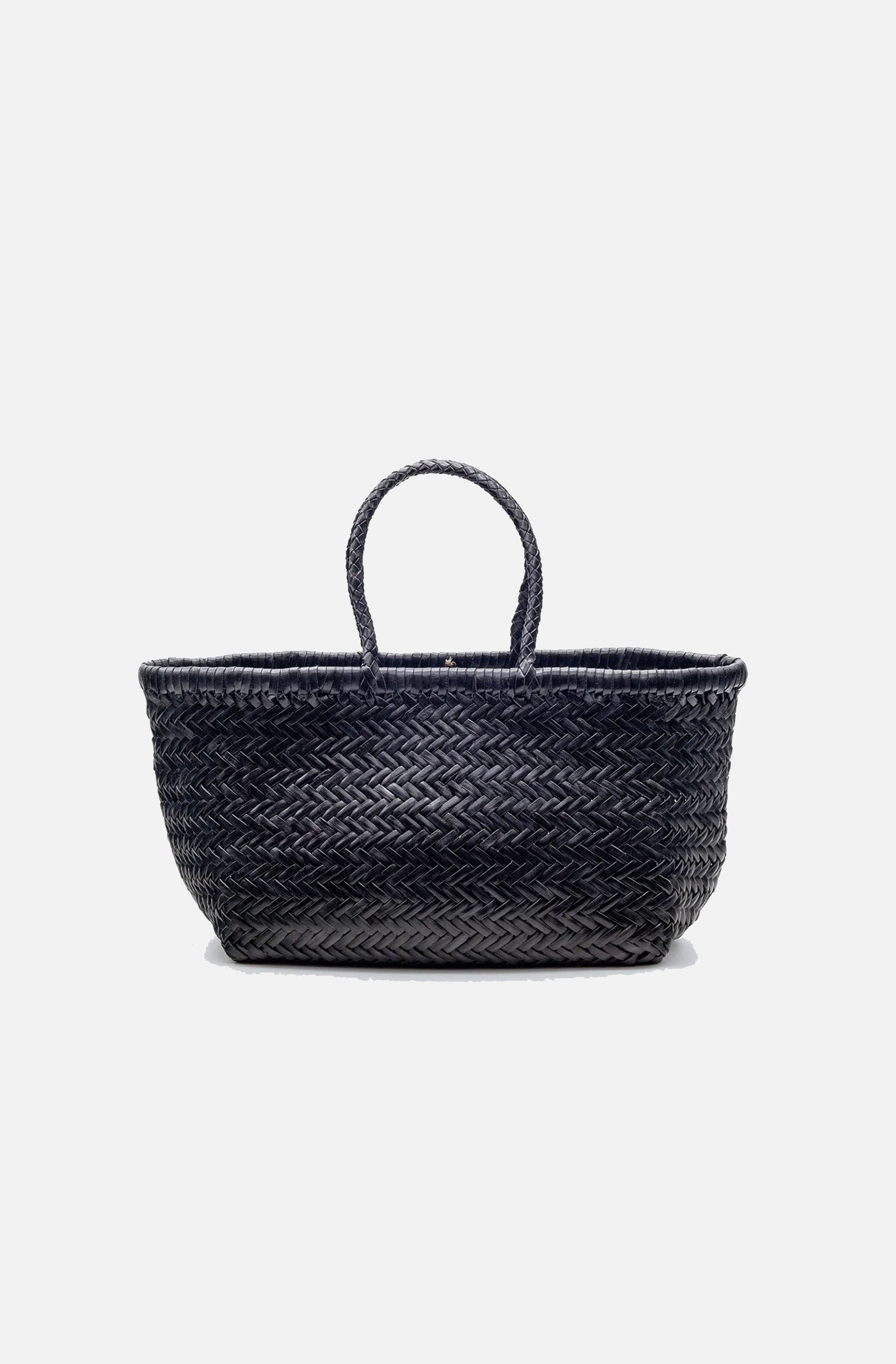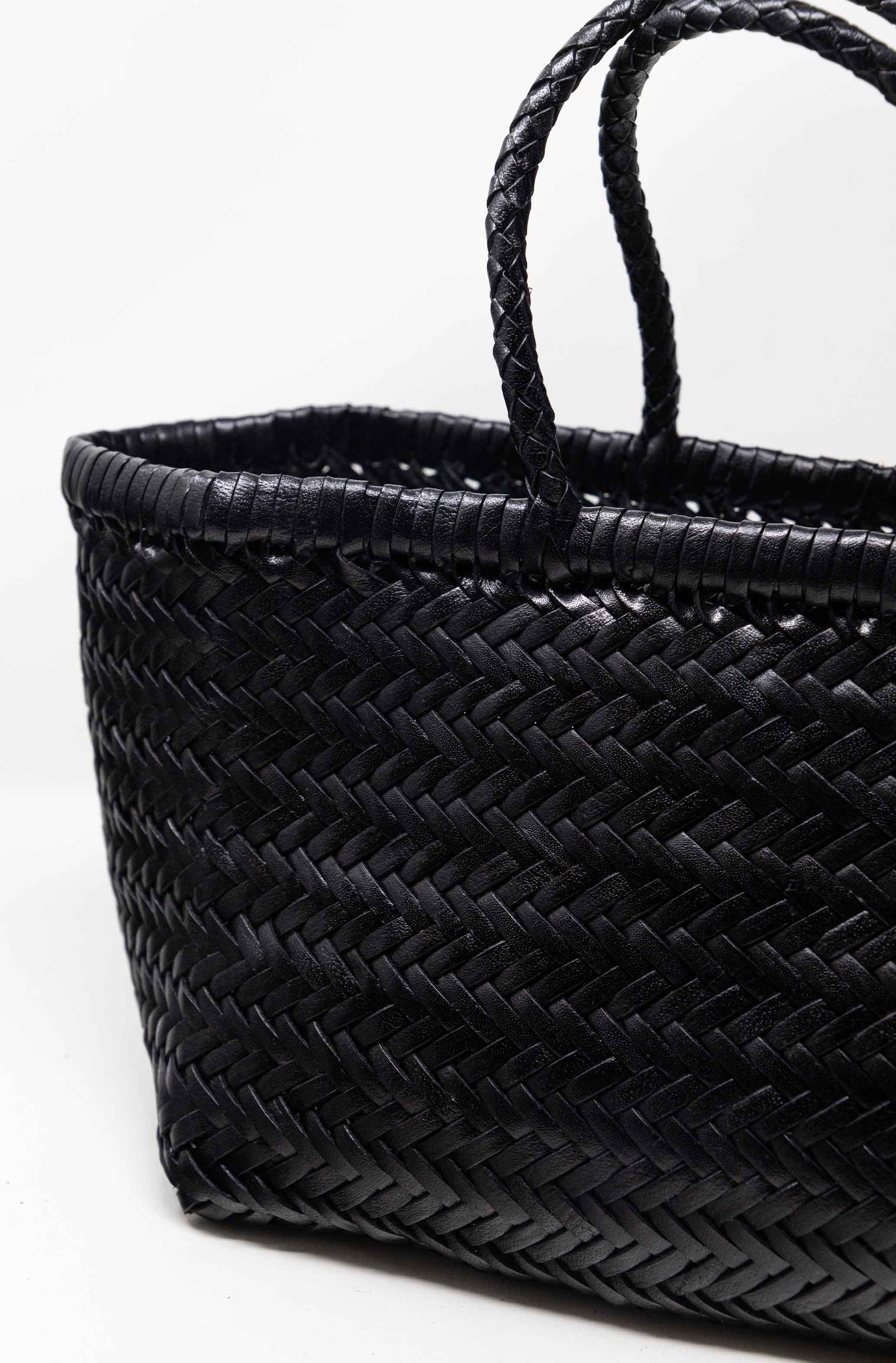 The iconic Dragon Diffusion bag. Hand-woven basket in smooth, buffalo calf leather. Handcrafted by our artisan weavers in one piece, with the diagonal chevron weave, the bag is unlined with an open top.