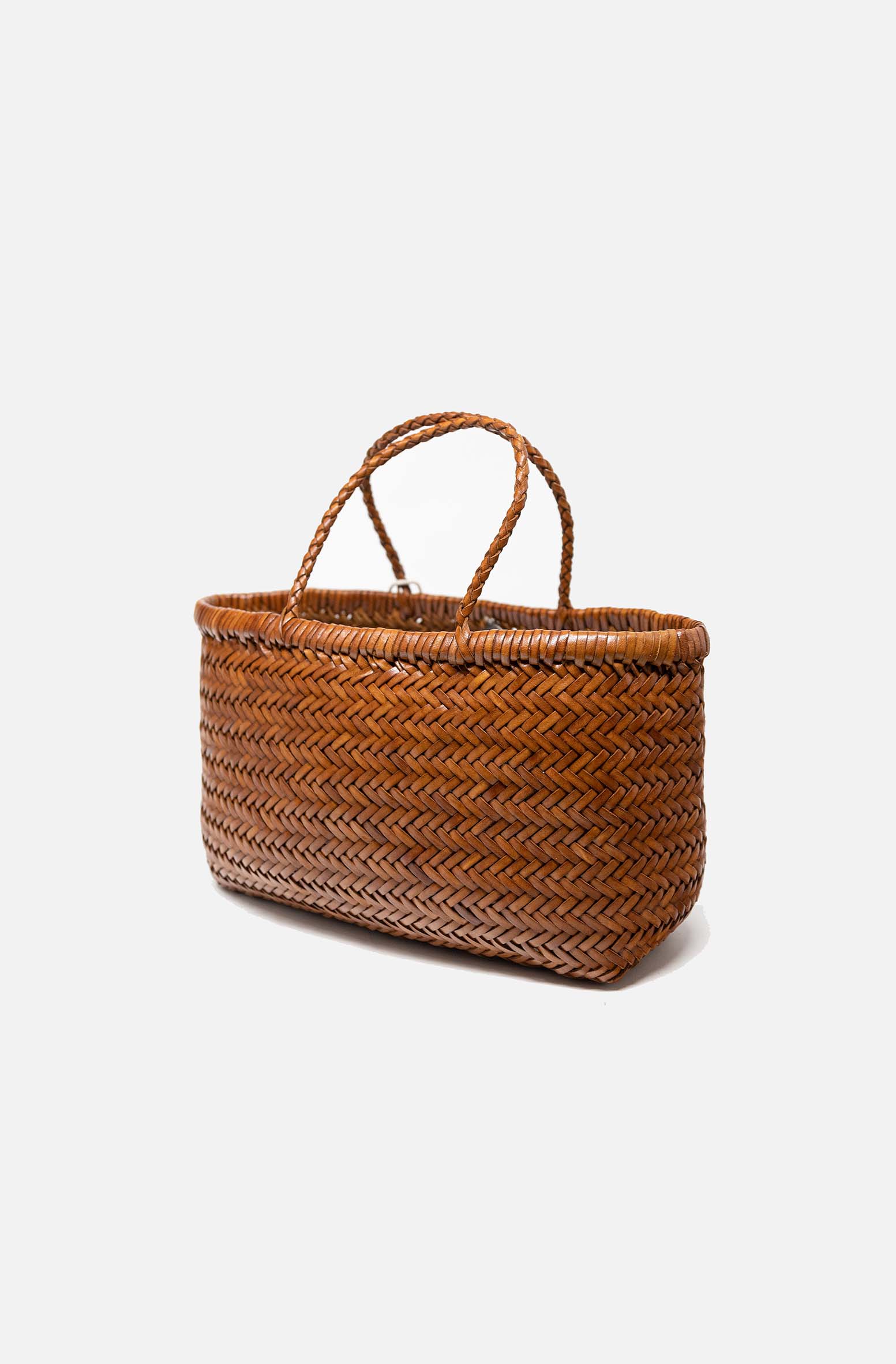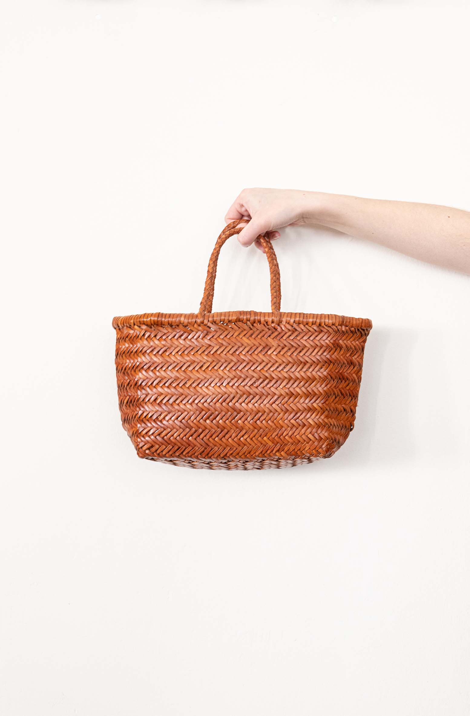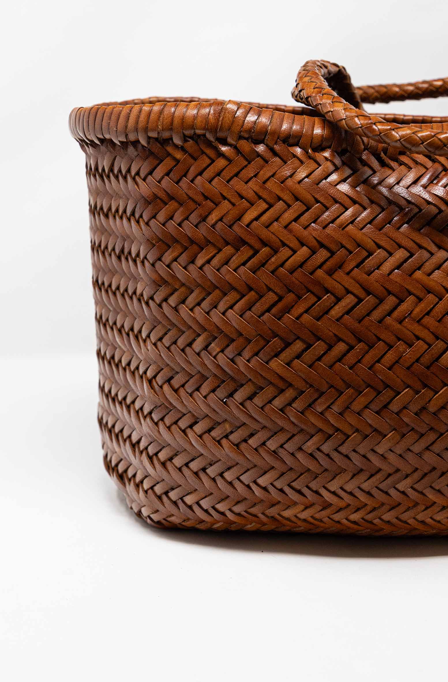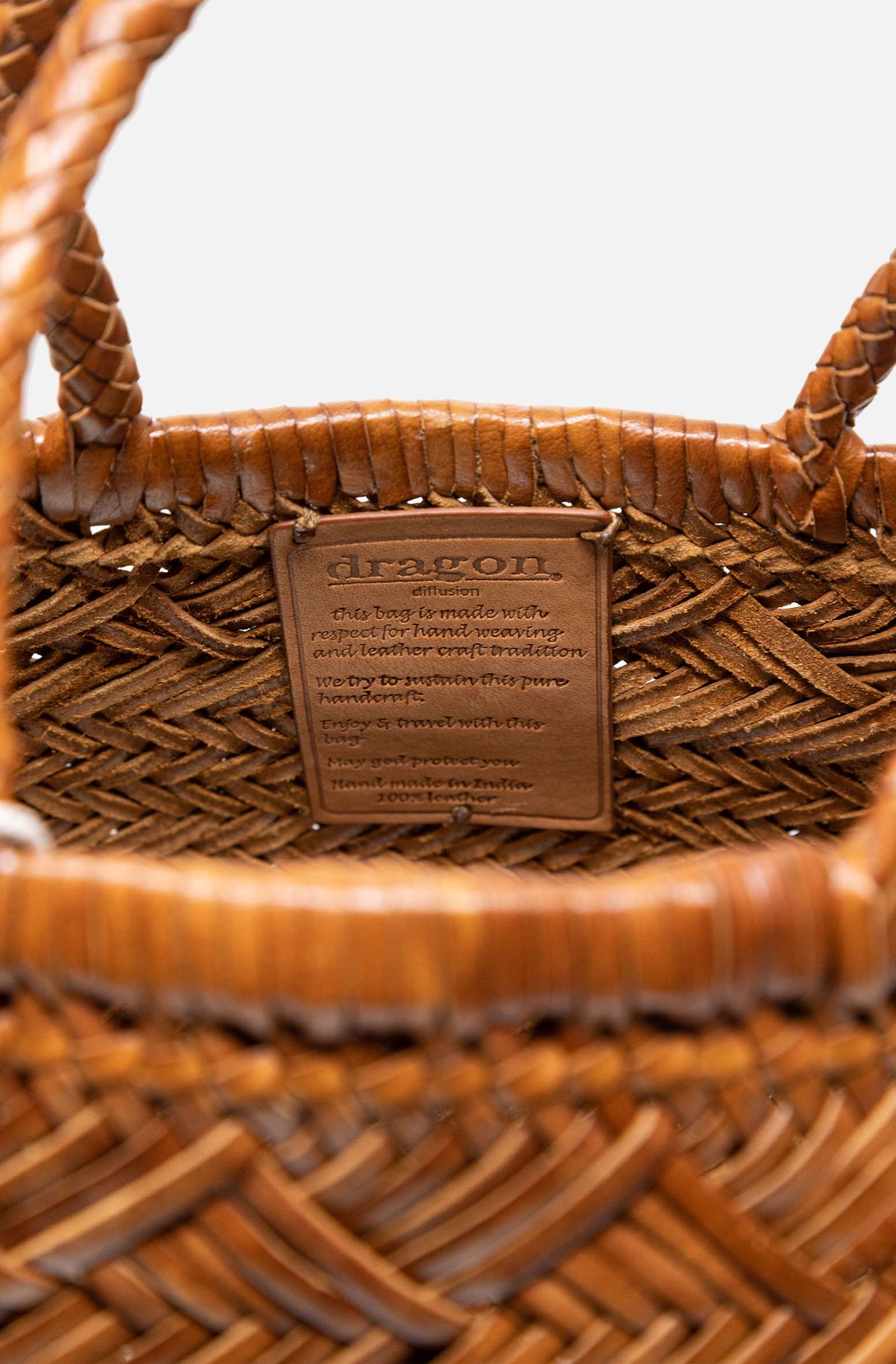 The iconic Dragon Diffusion bag. Hand-woven basket in smooth, buffalo calf leather. Handcrafted by our artisan weavers in one piece, with the diagonal chevron weave, the bag is unlined with an open top.